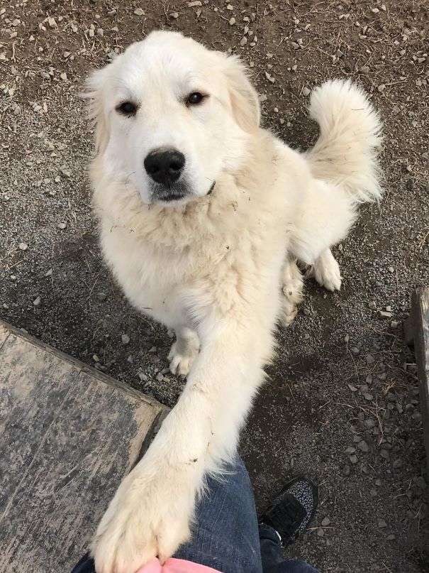 ▼「我在動物保護協會當志工,這隻狗狗第一次見我就跟我握手。」