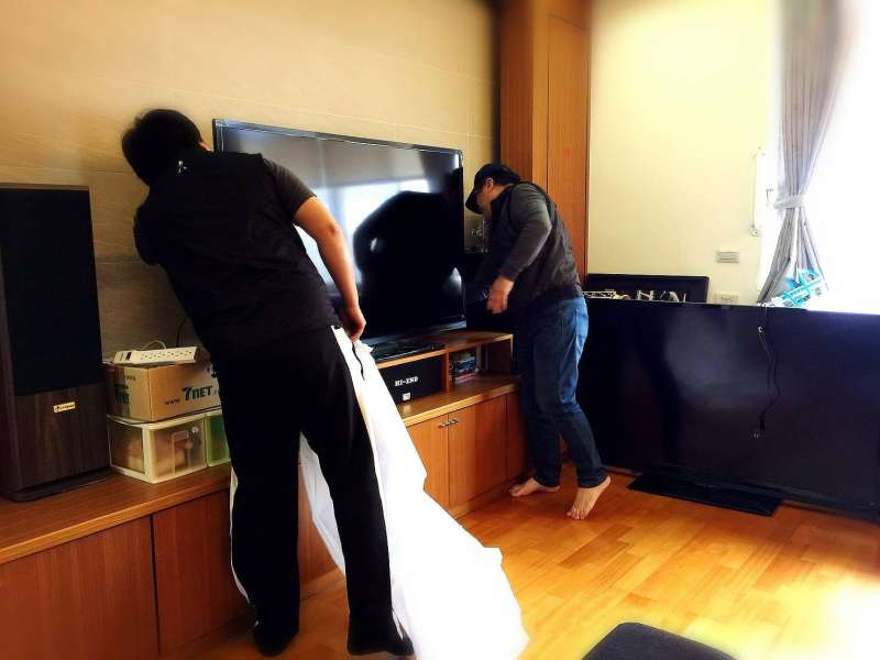 ▼服務人員拿來的是全新60吋的電視,安裝也完全免費。