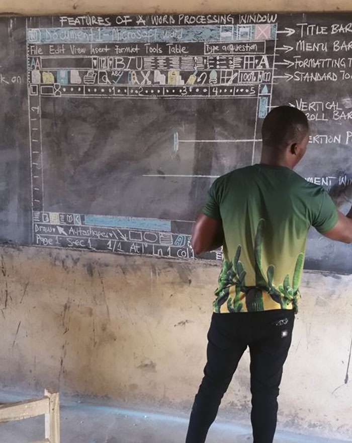 非洲老師沒電腦上資訊課! 在黑板上手繪螢幕「畫Word」…網友看了卻超生氣
