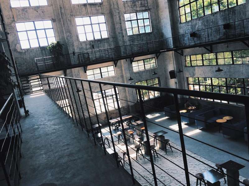 ▼這座咖啡館充分保留了廈門湖里經濟特區的工業氣息,在這裡可以品嘗到廈門的時代變遷和飛速發展。兩層咖啡館用旋轉鋼結構連結,充斥著工業風的裝飾。