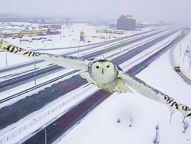 ▼3.加拿大人很有幽默感。這名蒙特婁居民用雪堆了一台車,還在上面放了一個雨刷,並把它「停」在錯誤的地方。燈光下車子看起來很逼真,警察都被騙到了。