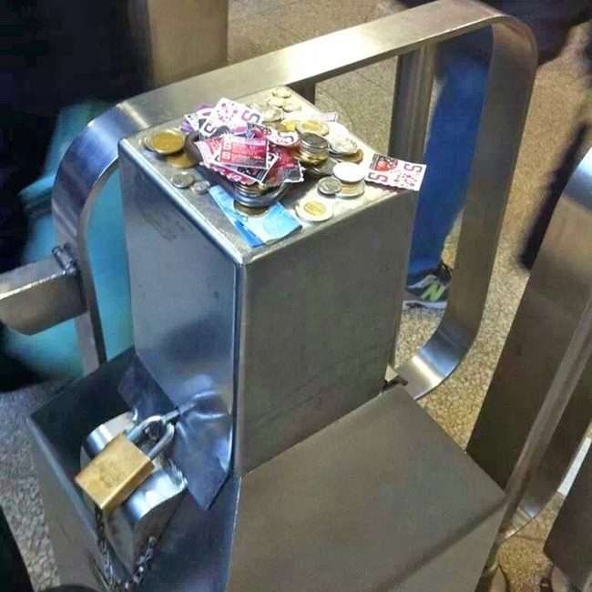 ▼12.加拿大人很誠實。地鐵站的一個閘門壞了,人們還是會放下零錢和車票。