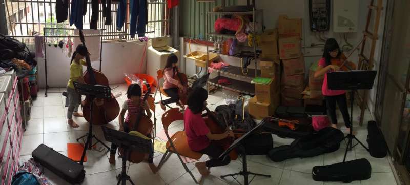 ▼這些小孩在加入樂團後,不用擔心他們會走偏,也讓他們找到了屬於自己發光發熱的舞台。不過因為經費關係,他們隨時隨地都能將環境變成他們的練習場地。