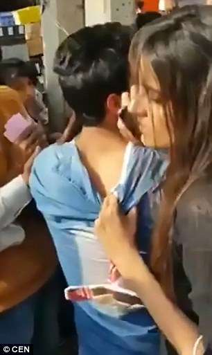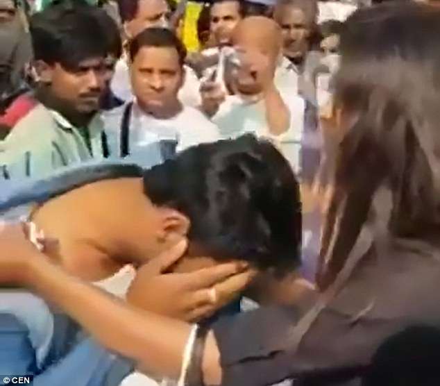 ▼在路人的協助下,她成功抓住了一名叫Manish Kumar的男子。女大生緊緊抓著他的衣服遊街示眾,並報警處理。警方趕到後將Manish逮捕,隨後將另一名叫做Abhishek的共犯逮捕歸案。