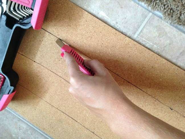 ▼用美工刀將軟木板按計劃的尺寸切開。