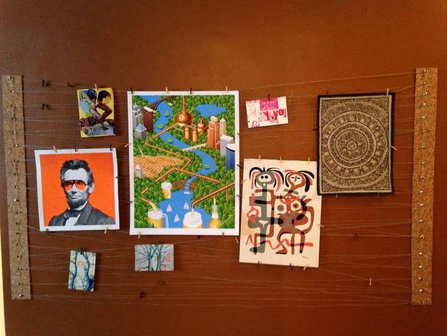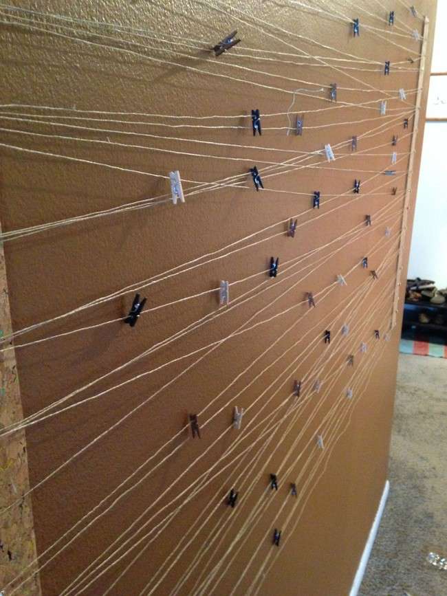 這個創意的亮點就在於你可以通過改變夾子的位置來隨意調整和任意組合各種圖片的位置,更重要的一點就是,相對於堅硬的水泥牆體,使用軟木條使固定圖釘更加容易,圖釘的數量和位置都可以根據你的需要隨時調整。你喜歡這個創意嗎?