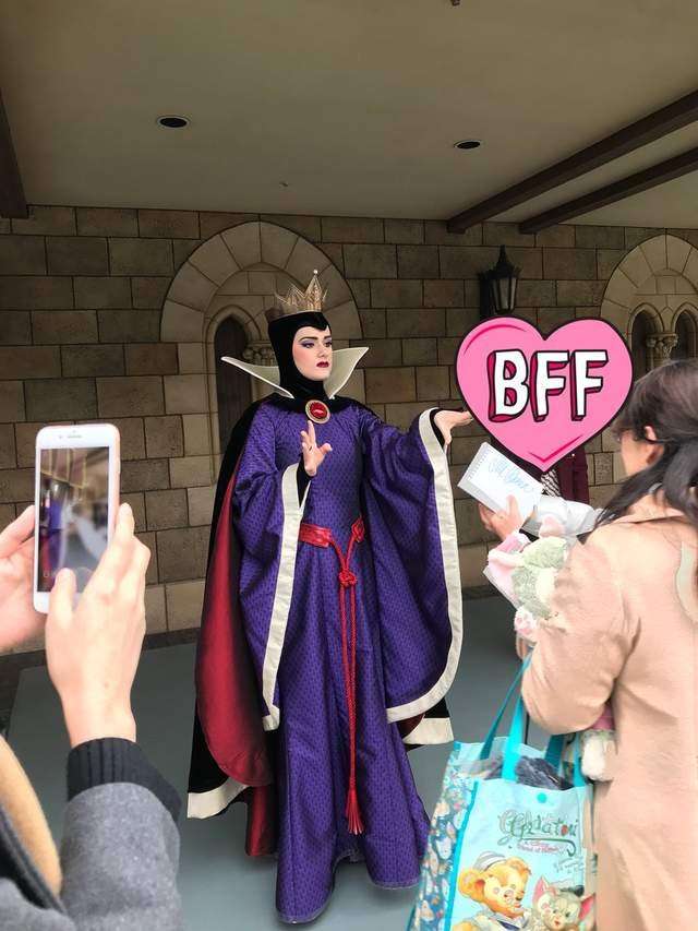2018年03月05日去迪士尼樂園玩,當然要找卡通人物一起拍照啦。除了各位公主,卡通中的反派也會有扮演的演員隨機出現,只是機率比較小,相當於隱藏角色。前幾天,一名網友去東京迪士尼樂園時,就遇到了超傲嬌的「壞皇后」!