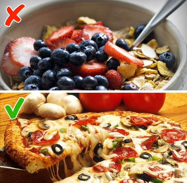 ▼早餐吃穀物:50g穀物中含有約4茶匙的糖,早晨吃碳水化合物,會導致胰島素水平快速上升,然後急遽下降,從而變得疲勞、懶散。牛奶、優格、水果等等也不適合空腹吃。著名營養師Chelsey Amer表示,早餐吃一片披薩,比吃穀物還要健康。因為披薩含有蛋白質、脂肪、碳水化合物,營養均衡。用煎蛋、瘦肉當早餐也不錯。