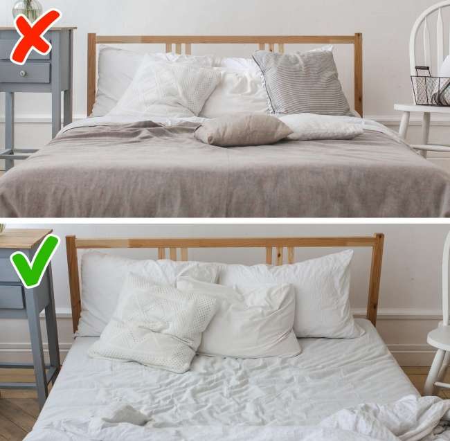 ▼起床後馬上鋪床:起床後立刻整理床鋪,會導致塵蟎大量繁殖,因為晚上睡覺時殘留的水分還沒有蒸發。科學家建議,醒來後將被子移開,打開窗戶晾曬一下床墊。