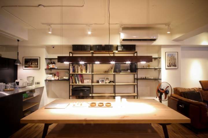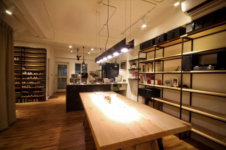 ▼房子中島使用了不鏽鋼一體製作,還使用了軌道燈讓燈可以隨意移動位置。除此之外還有個大餐桌,能讓一家人吃飯時凝聚感情、平時小孩用來畫圖鞋子;大人看書聊天都很方便。