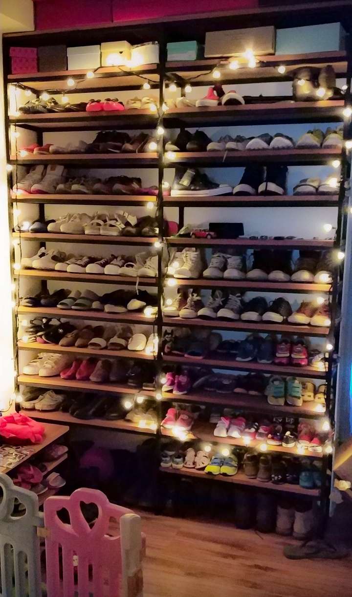 ▼最厲害的地方是二樓的部分,網友為老婆做了一個超大的鞋櫃,因為擔心氣候太潮濕而做成了開放式的。