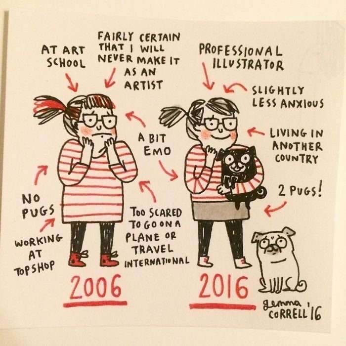 2018年03月06日現代人或多或少有一些心理問題。生活壓力太大,總要找個出口發洩。英國插畫家Gemma Correll就飽受憂鬱症、焦慮症困擾,她用畫筆講述自己的內心,展示了現代人普遍面臨的「焦慮」問題。