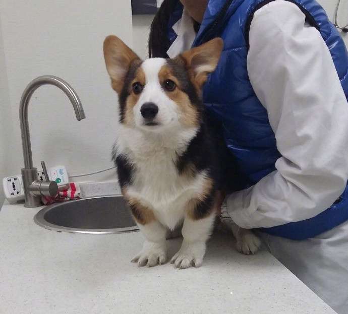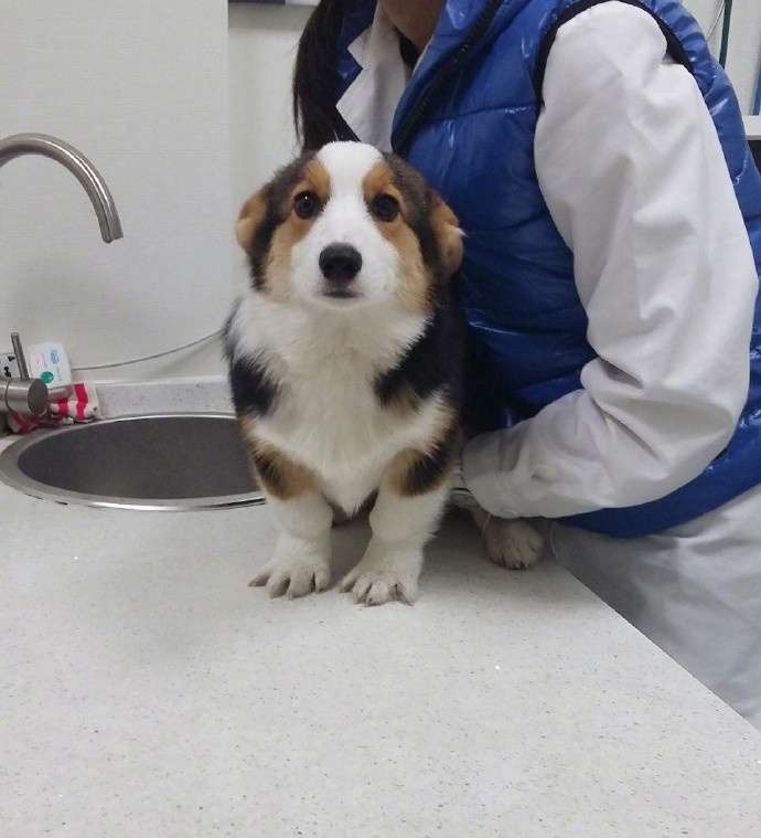 2018年03月07日微博網友「@蟹不要臉」家有一隻叫賤賤的可愛柯基犬。前幾天,賤賤去獸醫院檢查身體。牠剛進門就變得很緊張,臉上寫滿不安,調皮的個性全都收了起來,表現得很乖巧。