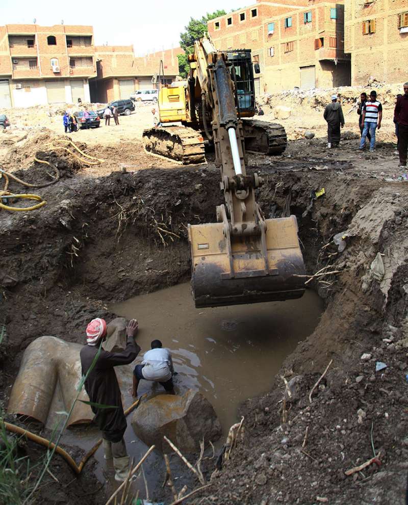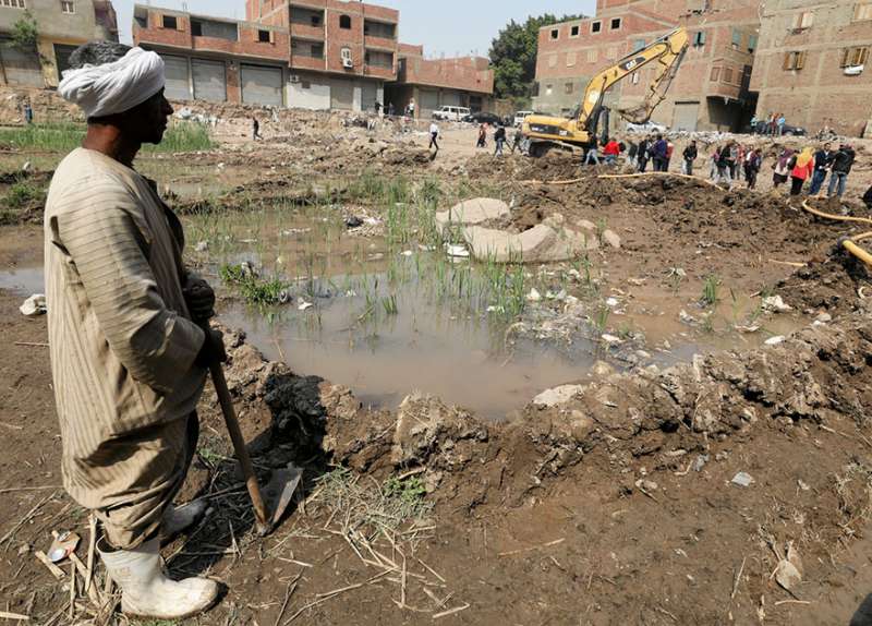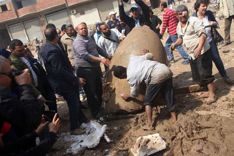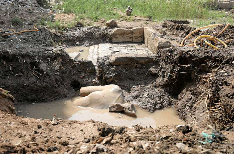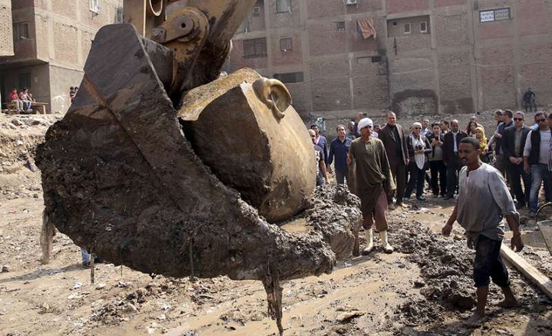 ▼這個驚人的發現就在開羅貧民窟,考古人員發現當地積水底下似乎有遺跡,開挖水池後,就發現了巨大的埃及古雕像。