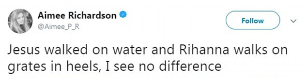 ▼許多粉絲紛紛留言表示:「耶穌在水面上行走,跟蕾哈娜穿著高跟鞋在水溝蓋上行走,我看不出分別」、「因為她是人間的女神」、「蕾哈娜應該有懸浮的超能力!」