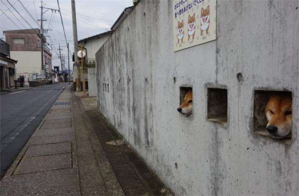 ▼這三隻柴柴分別叫做小太郎、豆太郎、福太郎,牠們的主人是當地的一名醫生,因為看見柴柴們總是喜歡從陽台往外看,似乎對外面的世界很好奇,所以搬新家的時候,他就在外牆上開了幾個小孔,這樣可以讓他們看到外面的景象。