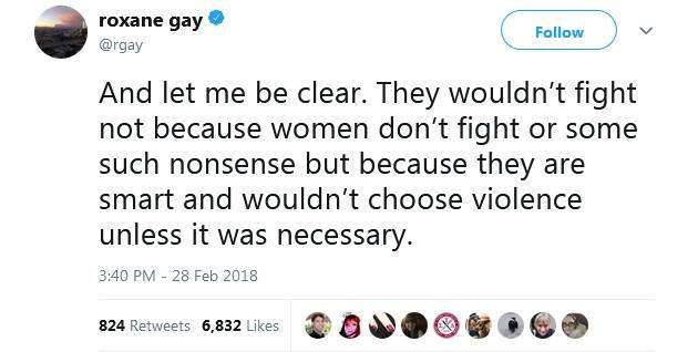 ▼「讓我再說清楚一點,她們不會打起來,不是因為女人不打架或是類似的胡扯,而是因為她們足夠聰明,不會選擇用暴力解決問題,除非那是必須的。」