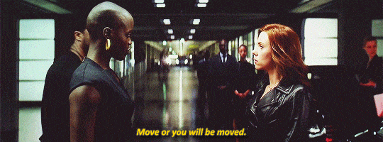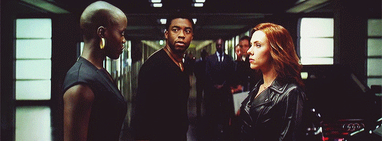 ▼朵拉親衛隊隊長Okoye不是典型的超級英雄,至少不像神力女超人一樣,有獨立的電影。但她和親衛隊隊員們面對真正的超級英雄時,卻毫不怯場。比如《美國隊長:英雄內戰》中,面對黑寡婦:「讓開,不然就把你拖走!」