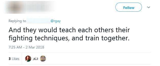 ▼網友們也覺得這話很對:「他們還會一起訓練,彼此學習戰鬥技巧。」