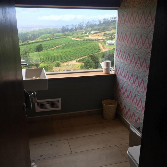 ▼南非康士坦提亞酒園,視野廣闊的廁所。
