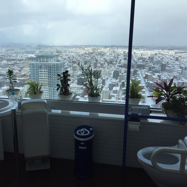 ▼日本JR大樓,俯瞰整個城市的廁所。