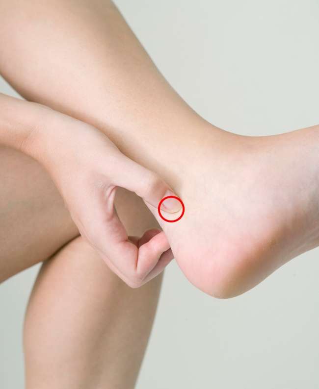 ▼崑崙:位於腳踝外側,在外踝頂點與腳跟相連線的中央點。按摩這個穴位能夠緩解肩頸、背部疼痛。
