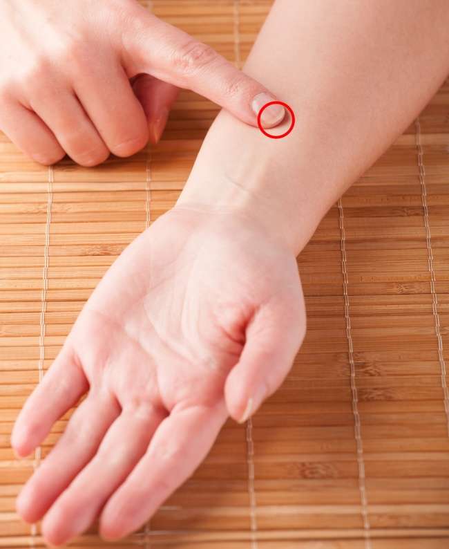 ▼內關:位於手腕橫紋正中,沿著兩條筋的中間往上2寸處。按摩這個穴位能夠減緩噁心、嘔吐、暈車。