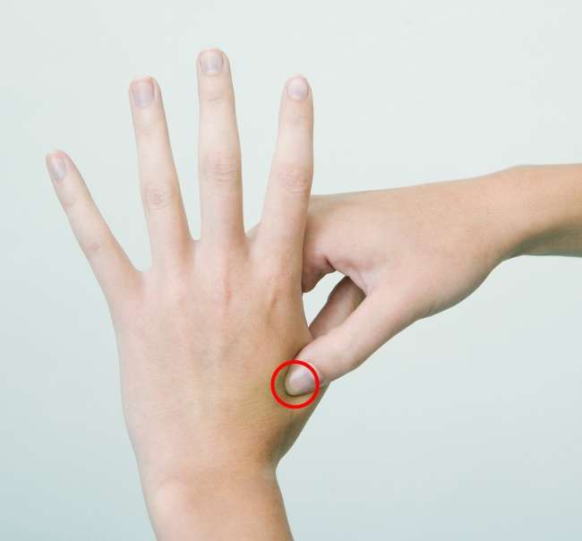 ▼合谷:位於大姆指食指相會合之處。按摩這個穴位能夠緩解牙痛、肩頸疼痛、頭痛。