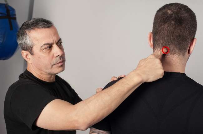 ▼風府:位於後背正中一條線上,在開始長頭髮的地方。按摩這個穴位能夠緩解頭痛、喉嚨痛、流鼻血。