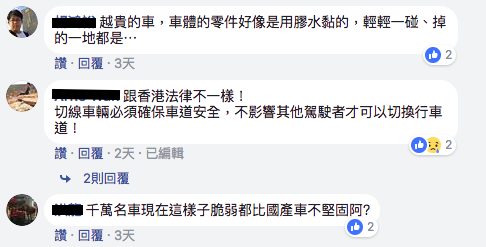 ▼有些網友發表歧視言論,認為女駕駛就是「三寶」。但也有不少人提出幽默的見解:「越貴的車,車體的零件好像是用膠水黏的,輕輕一碰、掉的一地都是」,批評名車太脆弱不耐撞!