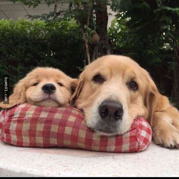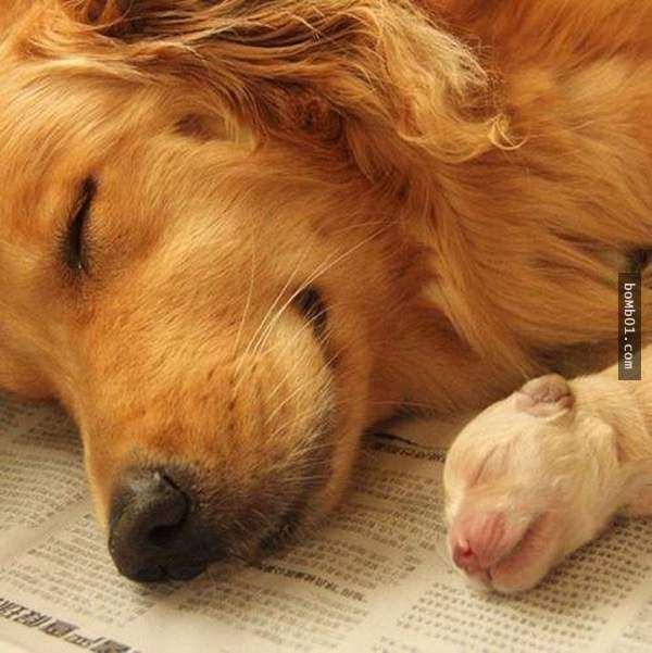 ▼剛出生不久的金毛寶寶,睡著的神情很媽媽簡直一模一樣,難道是在做同一個夢?!