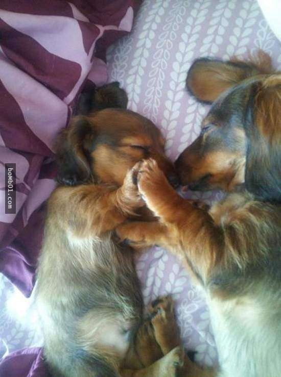 ▼連睡覺時都要默契的掌心對掌心,這種心與心的交流真實太溫馨了。