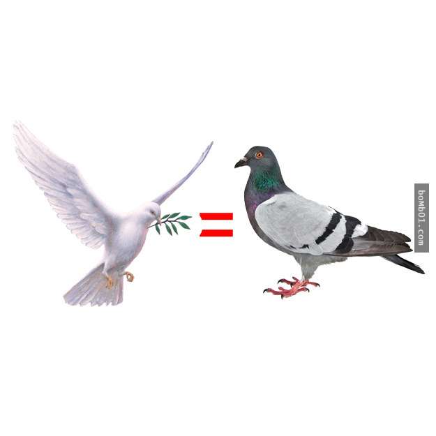 ▼1. 白鴿和鴿子其實是同一種動物,但是因為白鴿的英文名稱「dove」和鴿子「pigeon」不一樣,所以很多以英文為主要語言的人都誤以為牠們是不同的品種。