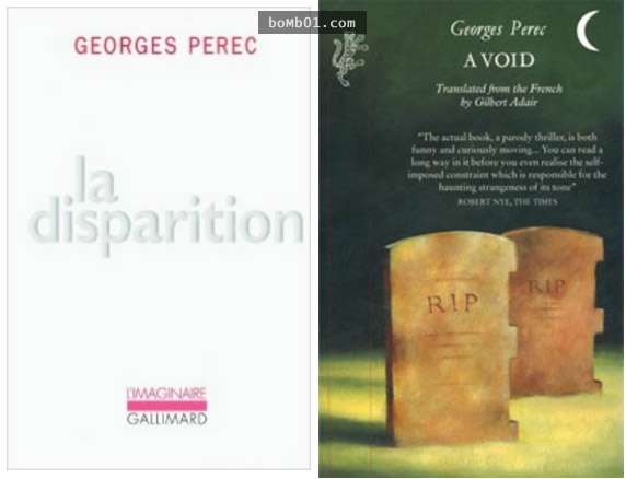 ▼16. 《La Disparition(消失)》是一本完全找不到「e」字母的書,作者喬治.佩雷克(Georges Perec)用法文寫書時,裡面所有的詞都沒有包含e字。後來Glibert Adair把這本書翻譯成英文時,同樣也是沒有用到e字母,而且就英文來看,《The Disappearance》更符合法文中的書名,但是為了貫徹「一本沒有e字的書」的概念,所以最後英文版的書名改成《A Void》。