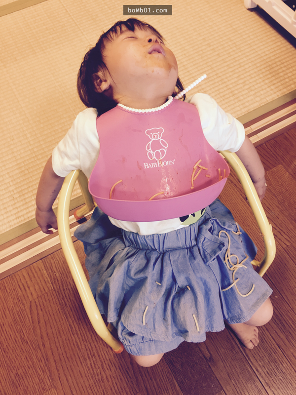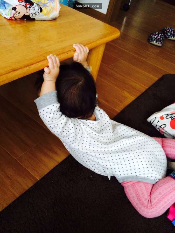 ▼媽媽說外出的衣服還沒換掉不能上床…
