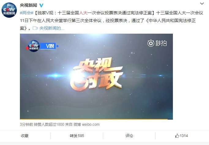 2018年03月12日關於最近習近平想要修改憲法讓自己「永久續任」的事情,如今終於有了結果,經過「中國式民主」的投票最終高票通過。