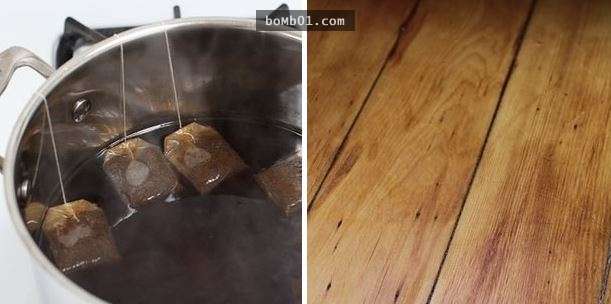 ▼22. 木質地板上的刮痕很困擾你?拿出紅茶茶包煮透後,放置地板染色,這樣就看不出刮痕了!