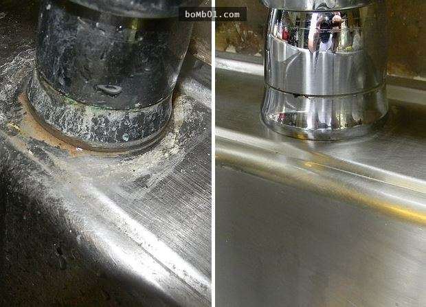 ▼5. 瓷水槽髒兮兮?拿出菜瓜布和清潔劑便可搞定!