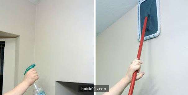 ▼23. 天花板的灰塵讓你鼻子不舒服?拿個平頭拖把,加上一點清潔劑,開始清洗天花板吧!
