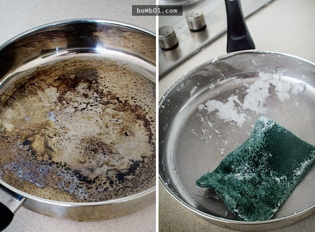 ▼1. 鍋子燒焦沒關係,只要拿點醋進鍋子裡就可以輕鬆刷掉燒焦的部分喔!
