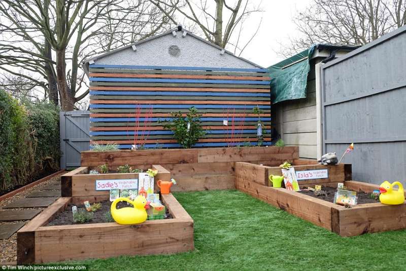 ▼為了讓小孩盡情玩樂,他們在後院加裝上了草皮。