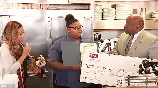 ▼南德州大學(Texas Southern University)也注意到了這名善良的學生,頒發給Williams1.6萬美元的獎學金(約台幣47萬元),並說:「我們希望獎勵她的善舉,讓她知道做善事從不會被忽視。」