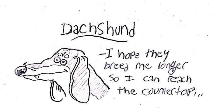 ▼臘腸犬:「希望他們把我養得長一點,讓我能爬上流理台……」
