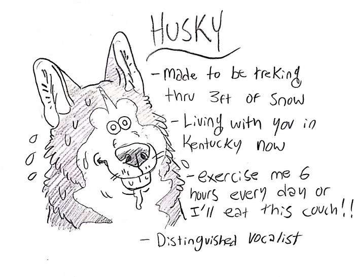 ▼哈士奇:天生就能在雪中走3呎路;現在跟你住在肯塔基州;嗓音獨特;「每天陪我運動6小時,否則就啃爛你的沙發!」