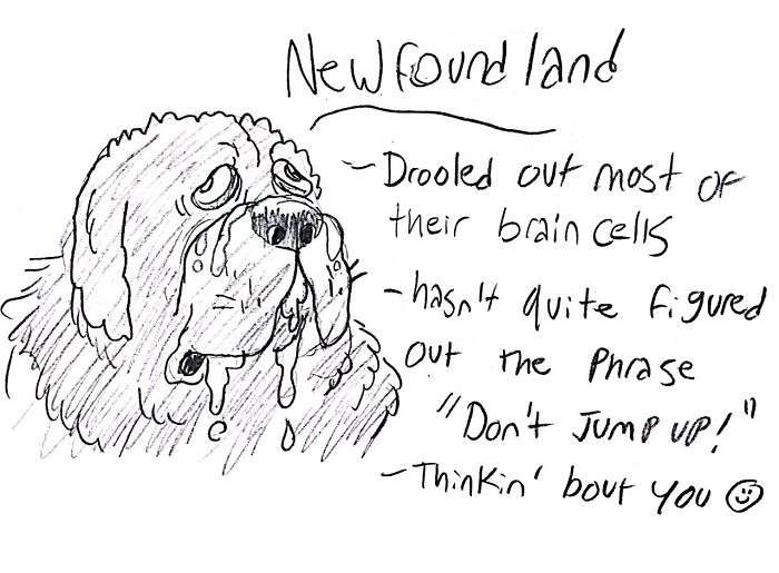 ▼紐芬蘭犬:大部分腦細胞都隨著口水流出去了;搞不懂「別跳上來」的意思;一直在想你。