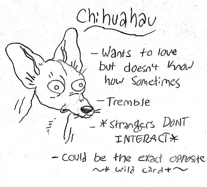 ▼吉娃娃:想愛卻不知道該怎麼愛;顫抖;不跟陌生人互動;也可能完全相反,反正不按牌理出牌。