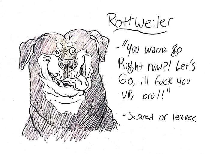 2018年03月14日狗狗的品種非常多,每一種都很可愛,也有自己的特質。美國聖路易藝術家Grace Gogarty很愛動物,還曾從事狗狗日托服務,接觸過很多狗狗。她根據16種狗狗的特點,創作了一系列有趣的插畫,那些分析超中肯啊。