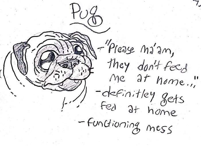 ▼巴哥:「拜託了,好心的女士,他們在家都不給我東西吃……」其實主人有好好餵牠;有功能障礙。