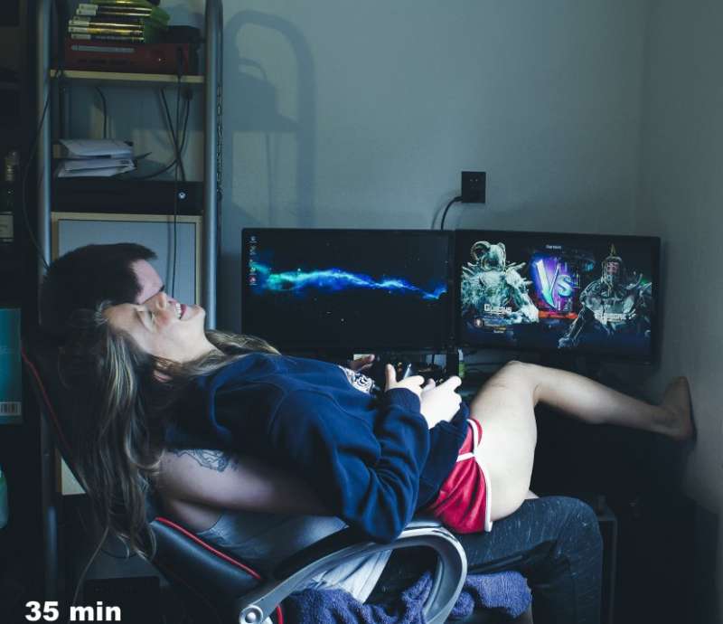 ▼照片左下角的數字,代表著Hyld與陌生人拍攝前相處的時間。她認為社群網站讓人與人的距離越來越遠,人們很少面對面溝通。不過她反應這一問題的作品,就是利用Tinder完成的,真是非常諷刺。