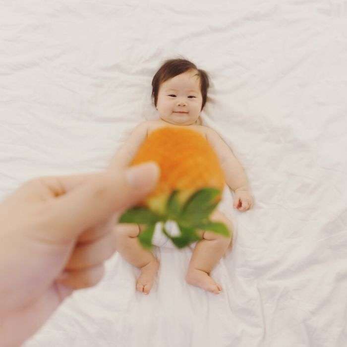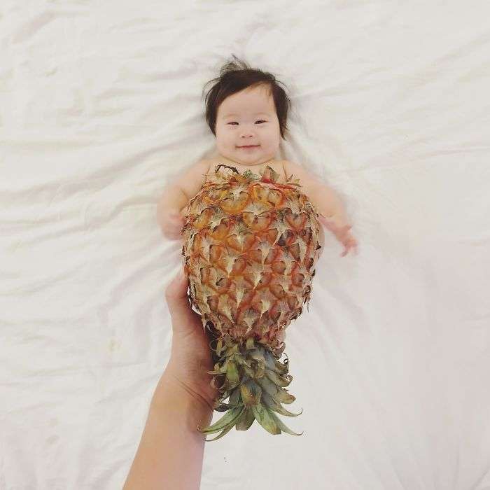 國外一名網友將各種水果、蔬菜和食物當做蔬菜,為她的小孩拍攝了「新衣照」,得到了非常熱淚的反應!一起來看看她為小孩打扮的樣子吧: